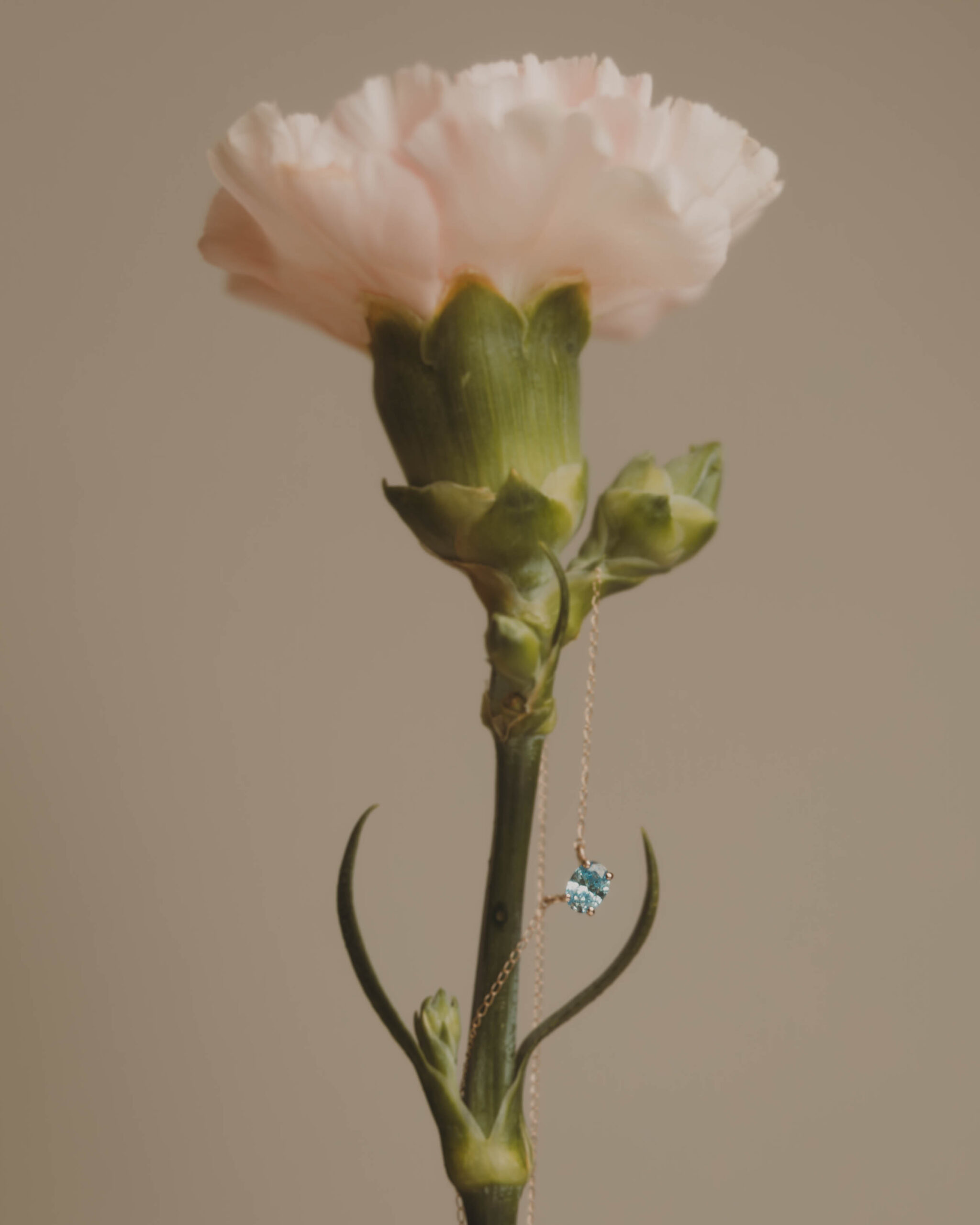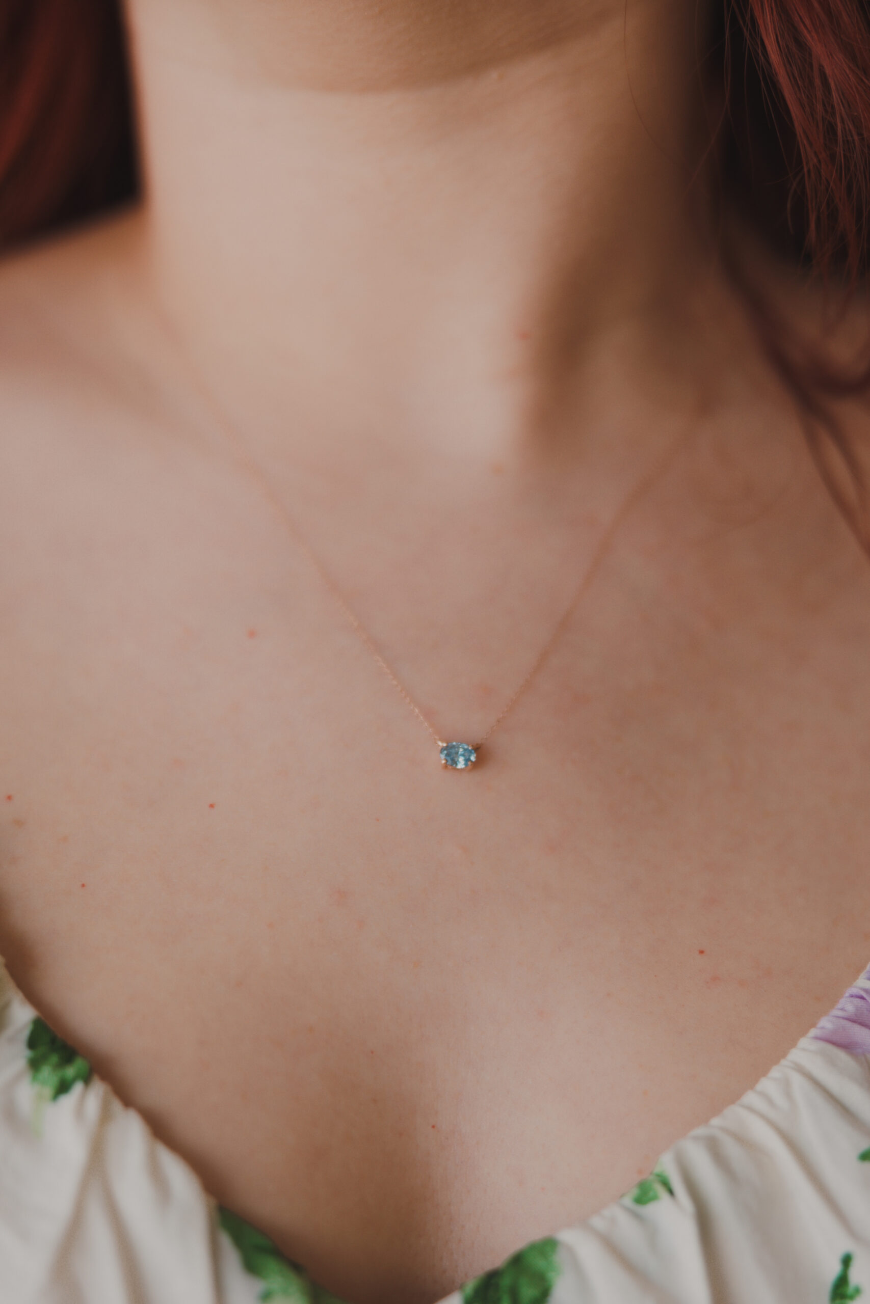Cadena de 18 pulgadas con dije de diamante azul de 0.55cts montado en horizontal oro rosa 14k